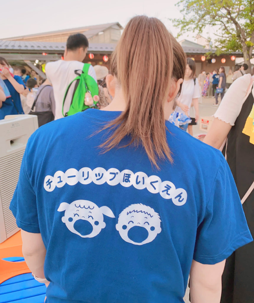 時差投稿になりますが、この夏チューリップ保育園様よりご依頼いただき、夕涼み会用のTシャツを製作をさせていただきました☆